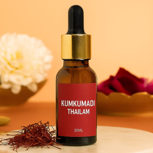 Kumkumadi Thailam is a traditional Ayurvedic beauty oil known as a timeless elixir for glowing skin. Made with saffron and precious herbs, it helps brighten complexion, reduce dark spots, improve skin texture, and promote a youthful radiance. Regular use nourishes the skin deeply, leaving it soft, smooth, and naturally luminous. ✨🌸